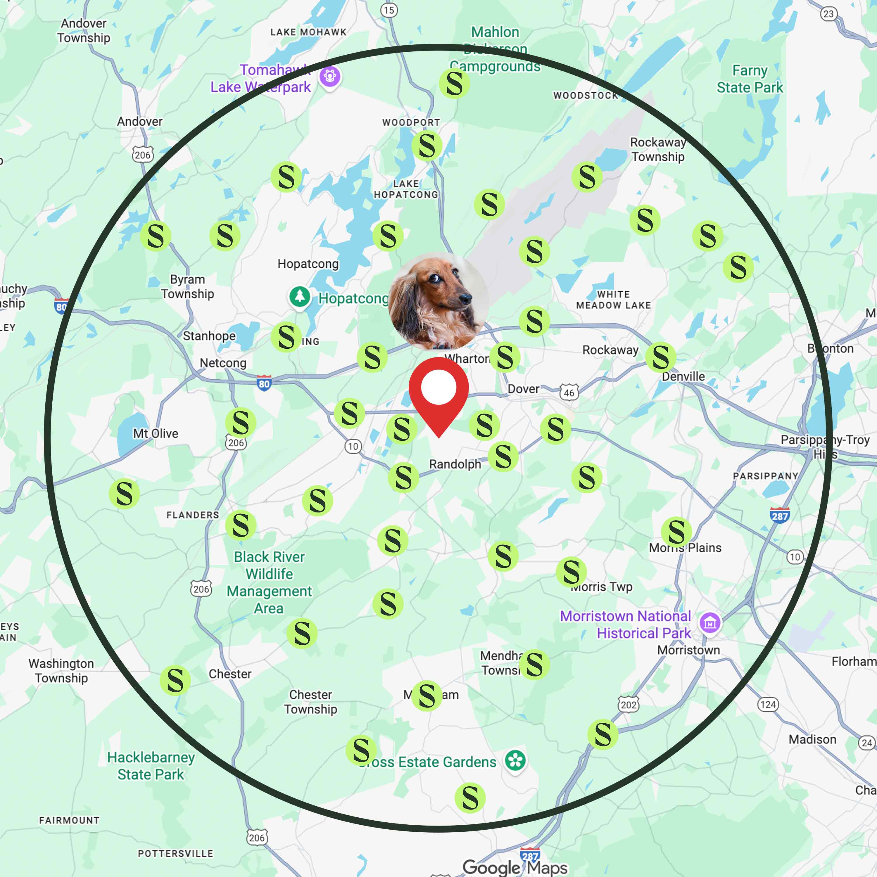 When you mark your pet as lost, an alert is sent to Supernormal users, local vets, and registered kennels within a 5 mile radius of the last known location.